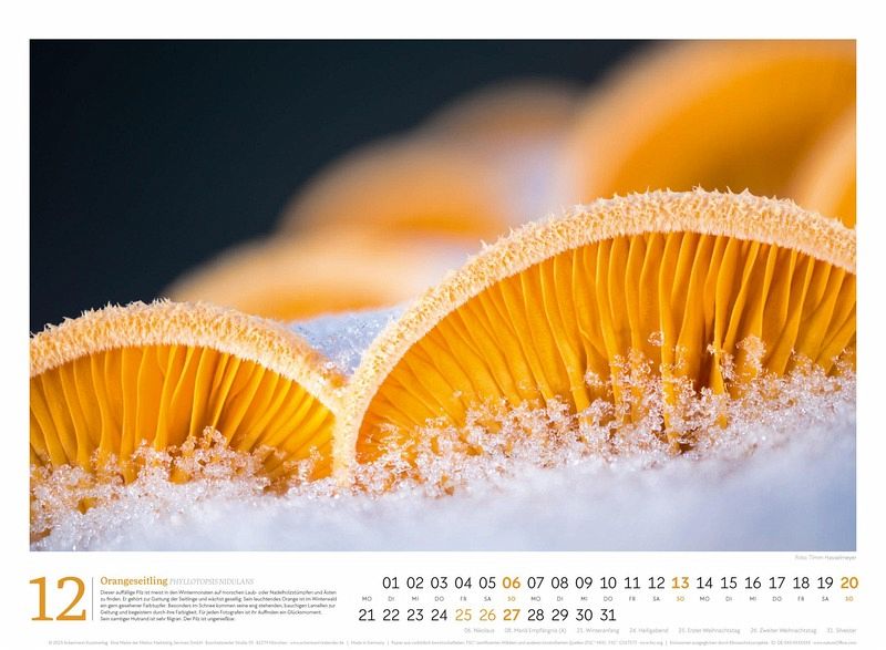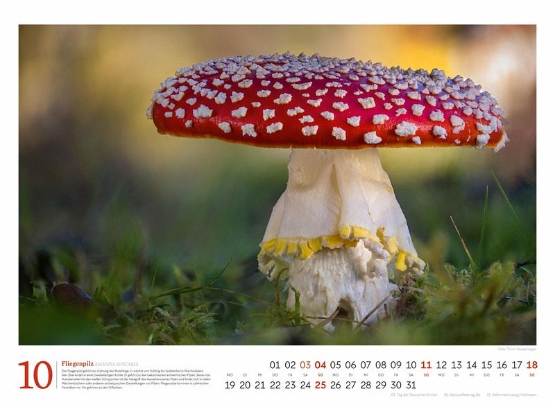 Pilze sind voll im Trend - in diesem Kalender finden Sie zwölf Prachtexemplare samt informativer Texte Pflanzen-Kalender im Querformat: 45x33 cm Hochwertiger Wandkalender mit 170 g/qm Papier und Spiralbindung Auf Papier aus nachhaltiger Forstwirtschaft in Deutschland produziert Leistet einen Beitrag zum Ackermann Firmenwald Deutschsprachiges Kalendarium