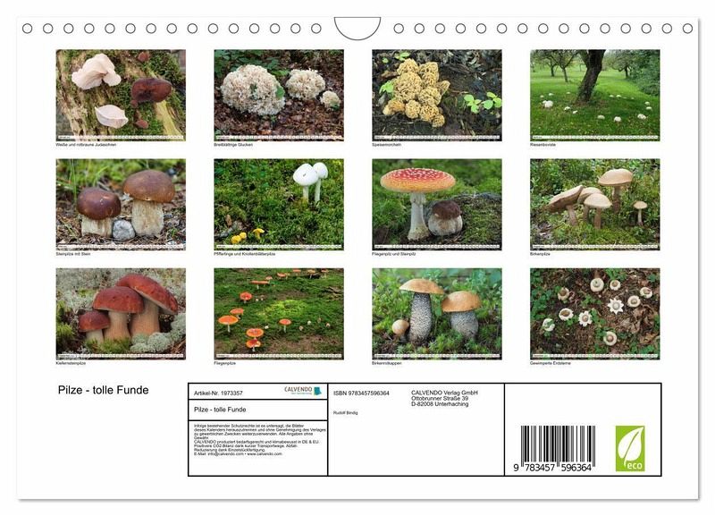 QUALITÄT - Hochwertiger Fotokalender mit 12 wunderschönen Motiven auf lichtbeständigem Bilderdruckpapier, robuste Spiralbindung mit Aufhängebügel.NACHHALTIG - deutliche Abfallreduzierung durch bedarfsgerechte Einzelstückfertigung, umweltfreundliches FSC-zertifiziertes Papier, Produktion in Deutschland, klimabewusste Logistik.PERFEKTES GESCHENK - Kalender für Freunde und Familie, für Kinder und Erwachsene, jung und alt, zu Weihnachten, Geburtstag oder zwischendurch.VIELFALT - Bildkalender in verschiedenen Formaten, z.B. DIN A5, DIN A4, DIN A3 sowie DIN A2. Ob Naturmotiv, Gemälde oder Fotos, ideal für ein persönliches Wohlfühlambiente.Ein Kaleidoskop außergewöhnlicher Pilzfunde. von Autor(in): Rudolf Bindig