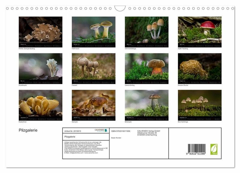 QUALITÄT - Hochwertiger Fotokalender mit 12 wunderschönen Motiven auf lichtbeständigem Bilderdruckpapier, robuste Spiralbindung mit Aufhängebügel.NACHHALTIG - deutliche Abfallreduzierung durch bedarfsgerechte Einzelstückfertigung, umweltfreundliches FSC-zertifiziertes Papier, Produktion in Deutschland, klimabewusste Logistik.PERFEKTES GESCHENK - Kalender für Freunde und Familie, für Kinder und Erwachsene, jung und alt, zu Weihnachten, Geburtstag oder zwischendurch.VIELFALT - Bildkalender in verschiedenen Formaten, z.B. DIN A5, DIN A4, DIN A3 sowie DIN A2. Ob Naturmotiv, Gemälde oder Fotos, ideal für ein persönliches Wohlfühlambiente.Faszinierende Pilzaufnahmen von Autor(in): Beate Wurster