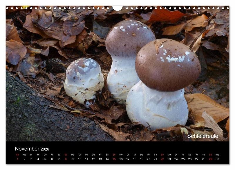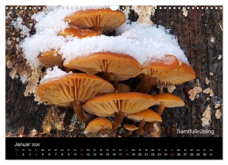 Pilze wachsen das ganze Jahr - nicht nur im Herbst. Der Kalender zeigt 12 heimische essbare Pilzarten an ihren natürlichen Standorten in Zuordnung zu ihren Wachstumsmonaten.