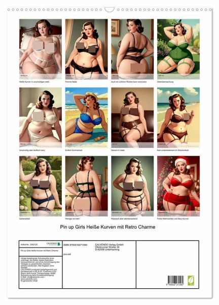 Heiße Kurven mit Retro-Charme für das ganze Jahr. Jeder Monat präsentiert kunstvoll gestaltete KI-Bilder von atemberaubenden Pin-up Girls, die ihre Kurven in verführerischer Unterwäsche zur Schau stellen. Diese Kalenderkollektion ist eine Hommage an die Schönheit, Sinnlichkeit und Eleganz der weiblichen Form.