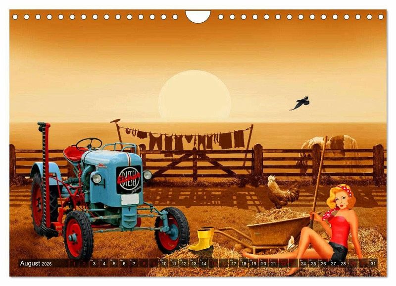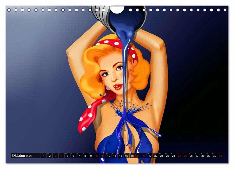 Ein Kalender im Retro Style der 50er Jahre - dazu kultige Oldtimer mit sexy Pin-Up Girls im Rockabilly Look .
