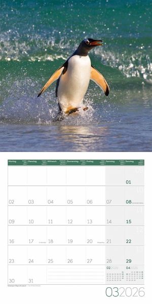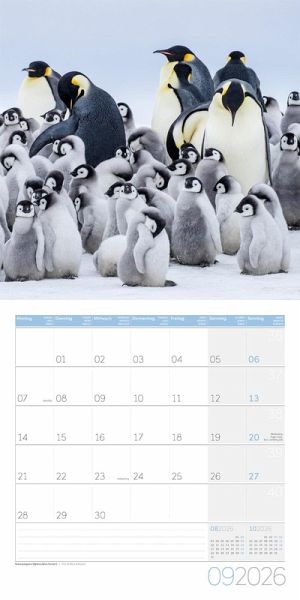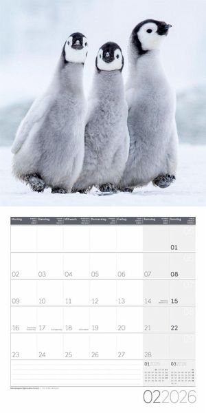 Im Wasser sind sie faszinierend schnelle und effiziente Jäger, an Land gehören sie zu den sympathischsten Tieren des Planeten: Pinguine gehen aufrecht wie Menschen, haben Federn wie Vögel und "Flossen" wie Fische. Wir lassen sie in zwölf charmanten Motiven, die sie einzeln, im Familienverbund oder in großen Kolonien zeigen, in Ihre vier Wände einziehen. Alle Art12-Kalender sind mit einem Jahresplaner ausgestattet.