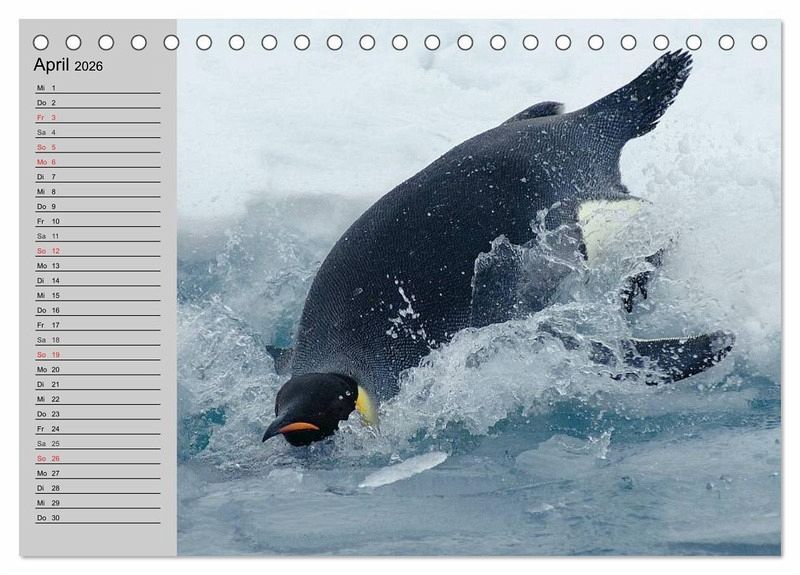 Fast jeder Mensch kennt Pinguine. Das Watscheln in ihrem schönen Frack sieht sehr drollig aus und man muss einfach schmunzeln, wenn man Pinguine sieht. So gemächlich sie an Land sind, so blitzschnell sind sie im Wasser. Sie fliegen förmlich durch das kalte Nass. Dieser Kalender ist ein schöner und interessanter Planer für die ganze Familie.