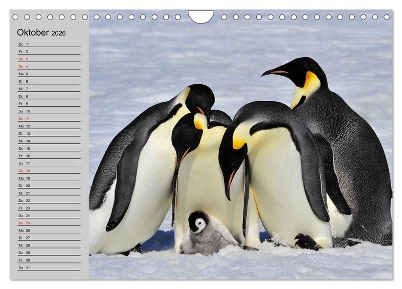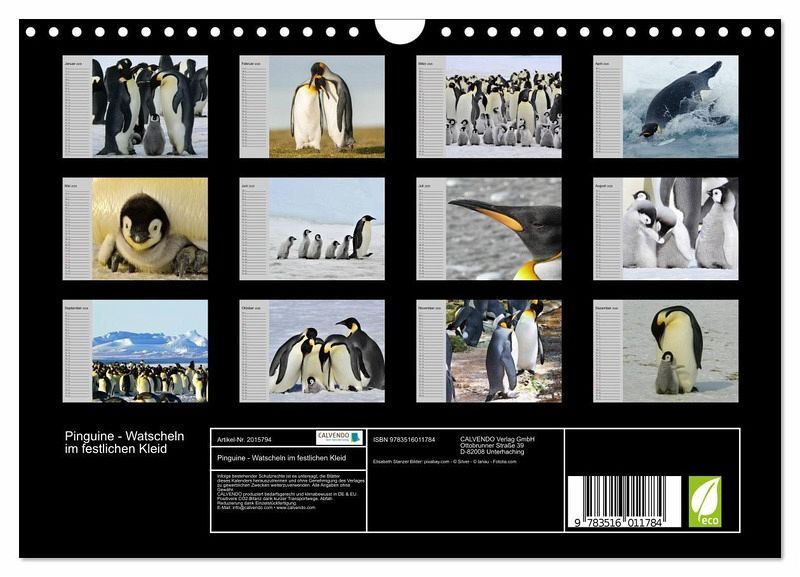 Fast jeder Mensch kennt Pinguine. Das Watscheln in ihrem schönen Frack sieht sehr drollig aus und man muss einfach schmunzeln, wenn man Pinguine sieht. So gemächlich sie an Land sind, so blitzschnell sind sie im Wasser. Sie fliegen förmlich durch das kalte Nass. Dieser Kalender ist ein schöner und interessanter Planer für die ganze Familie.