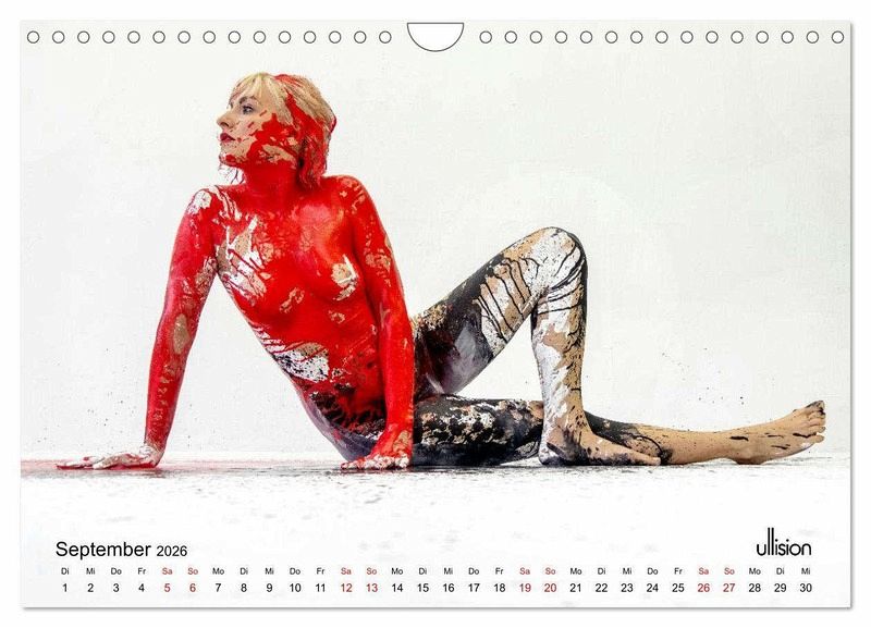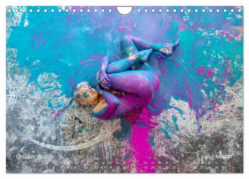 Körperkunst der Extravaganz. Expressive Fotografie, die nackte Haut in Farbe hüllt und subtil verlockend wirkt.