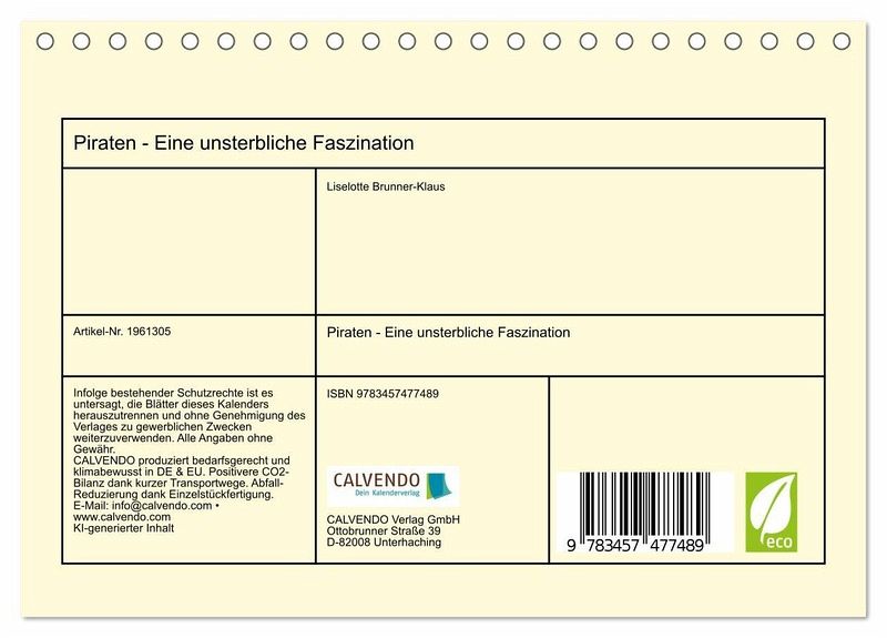 QUALITÄT - Hochwertiger Fotokalender mit 12 wunderschönen Motiven auf lichtbeständigem Bilderdruckpapier, robuste Spiralbindung.NACHHALTIG - deutliche Abfallreduzierung durch bedarfsgerechte Einzelstückfertigung, umweltfreundliches FSC-zertifiziertes Papier, Produktion in Deutschland, klimabewusste Logistik.PERFEKTES GESCHENK - Kalender für Freunde und Familie, für Kinder und Erwachsene, jung und alt, zu Weihnachten, Geburtstag oder zwischendurch.VIELFALT - Bildkalender in verschiedenen Formaten, z.B. DIN A5, DIN A4, DIN A3 sowie DIN A2. Ob Naturmotiv, Gemälde oder Fotos, ideal für ein persönliches Wohlfühlambiente.Freibeuter der Weltmeere von Autor(in): Liselotte Brunner-Klaus