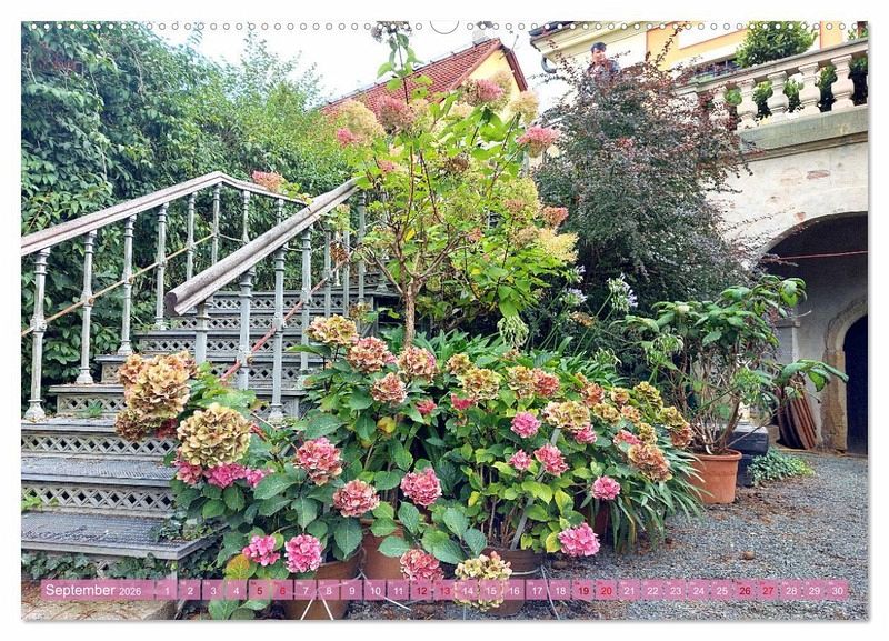 September: Landschloss Zuschendorf, eine der größten Hortensiensammlungen Deutschlands