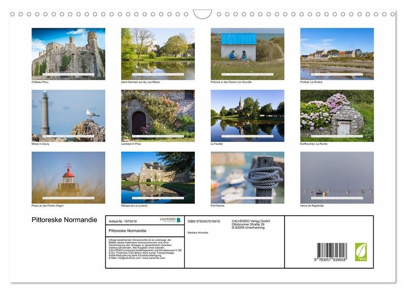 QUALITÄT - Hochwertiger Fotokalender mit 12 wunderschönen Motiven auf lichtbeständigem Bilderdruckpapier, robuste Spiralbindung mit Aufhängebügel.NACHHALTIG - deutliche Abfallreduzierung durch bedarfsgerechte Einzelstückfertigung, umweltfreundliches FSC-zertifiziertes Papier, Produktion in Deutschland, klimabewusste Logistik.PERFEKTES GESCHENK - Kalender für Freunde und Familie, für Kinder und Erwachsene, jung und alt, zu Weihnachten, Geburtstag oder zwischendurch.VIELFALT - Bildkalender in verschiedenen Formaten, z.B. DIN A5, DIN A4, DIN A3 sowie DIN A2. Ob Naturmotiv, Gemälde oder Fotos, ideal für ein persönliches Wohlfühlambiente.Pittoreske Normandie - Impressionen zwischen Erde und Meer von Autor(in): Barbara Homolka