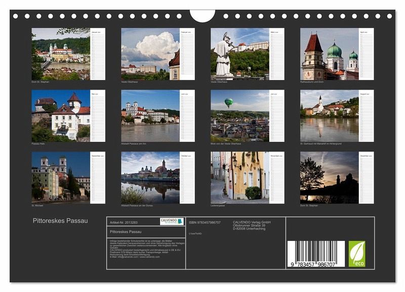 QUALITÄT - Hochwertiger Fotokalender mit 12 wunderschönen Motiven auf lichtbeständigem Bilderdruckpapier, robuste Spiralbindung mit Aufhängebügel.NACHHALTIG - deutliche Abfallreduzierung durch bedarfsgerechte Einzelstückfertigung, umweltfreundliches FSC-zertifiziertes Papier, Produktion in Deutschland, klimabewusste Logistik.PERFEKTES GESCHENK - Kalender für Freunde und Familie, für Kinder und Erwachsene, jung und alt, zu Weihnachten, Geburtstag oder zwischendurch.VIELFALT - Bildkalender in verschiedenen Formaten, z.B. DIN A5, DIN A4, DIN A3 sowie DIN A2. Ob Naturmotiv, Gemälde oder Fotos, ideal für ein persönliches Wohlfühlambiente.Die Schönheit der Dreiflüssestadt Passau von Autor(in): U boeTtchEr