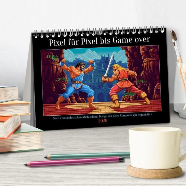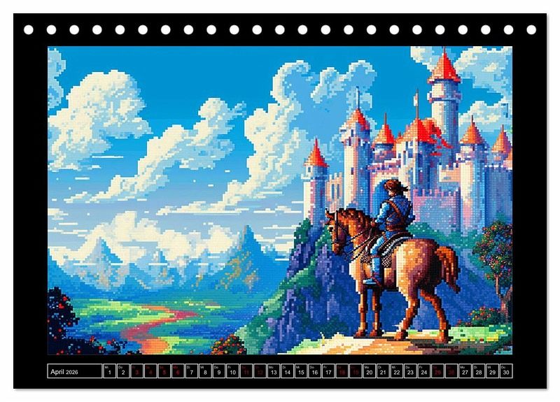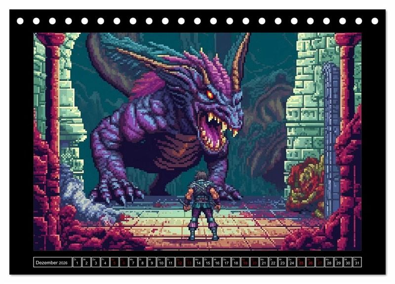 Dieser Kalender ist ein Fest der Nostalgie für alle Gamer da draußen. Jeder Monat präsentiert ein farbenfrohes, aber herrlich pixeliges 8-Bit-Bild, das von alten PC-Spielen inspiriert ist. Es ist fast so, als ob die Helden vergangener Zeiten von deinem Kalender aus auf dich herabblicken und sagen: "Hey, lass uns nochmal Spaß haben!"