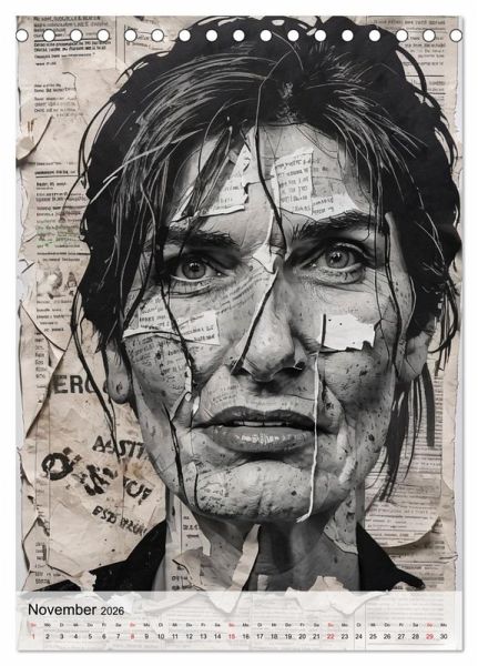 Wird ein Plakat beschädigt, so erfährt die Darstellung darauf nicht nur einen Mangel, sondern auch eine Neuinterpretation. Vor allen treten bei einem Abriss darunter liegende Abbildungen teilweise zutage. Bei Überklebungen werden die abgedeckten Teile mit neuen Inhalten erfüllt. Und auch Beschmierungen und Verschmutzungen verändert sich nicht nur das Aussehen, sondern auch die Wirkung der Abbildung. Es entstehen Collagen des Zufalls, die bei Personendarstellungen unter einer makellosen Oberfläche die Verletzlichkeit des Menschen sichtbar machen. Mit Hilfe von künstlicher Intelligenz sind in diesem Kalender zwölf Beispiele solcher Deutungsmöglichkeiten entstanden, die Sie Monat für Monat für sich selbst interpretieren können.