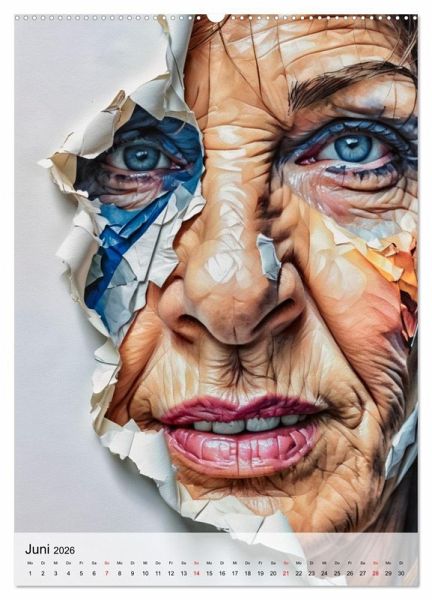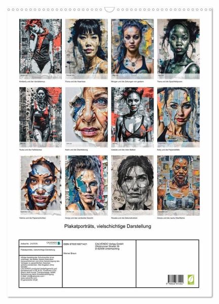 Wird ein Plakat beschädigt, so erfährt die Darstellung darauf nicht nur einen Mangel, sondern auch eine Neuinterpretation. Vor allen treten bei einem Abriss darunter liegende Abbildungen teilweise zutage. Bei Überklebungen werden die abgedeckten Teile mit neuen Inhalten erfüllt. Und auch Beschmierungen und Verschmutzungen verändert sich nicht nur das Aussehen, sondern auch die Wirkung der Abbildung. Es entstehen Collagen des Zufalls, die bei Personendarstellungen unter einer makellosen Oberfläche die Verletzlichkeit des Menschen sichtbar machen. Mit Hilfe von künstlicher Intelligenz sind in diesem Kalender zwölf Beispiele solcher Deutungsmöglichkeiten entstanden, die Sie Monat für Monat für sich selbst interpretieren können.