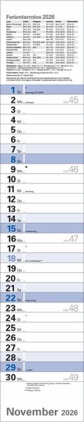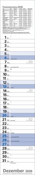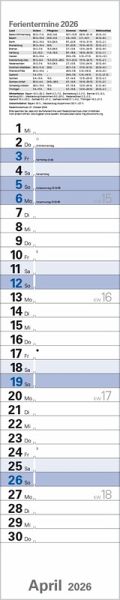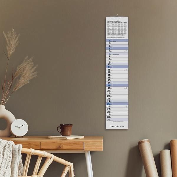 - Format: 11,5 x 57,5 cm; schmaler Wandkalender mit viel Platz für Termine