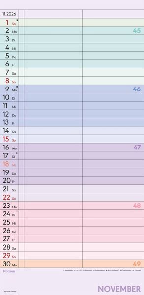 Bringen Sie Farbe und Struktur in Ihren Alltag mit dem Planer für mich Farbenfroh im praktischen Format 22 x 45 cm. Dieser Kalender ist die perfekte Unterstützung, um Ihre Termine effizient zu planen und sich gleichzeitig mehr Zeit für sich selbst zu schaffen.