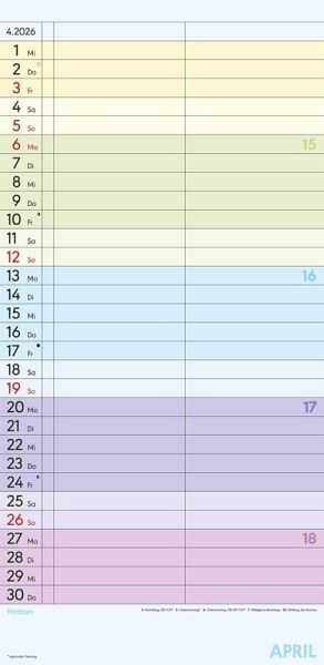 Planer für mich Farbenfroh im Format 22x45 cm - Ihre Zeit stilvoll organisiert