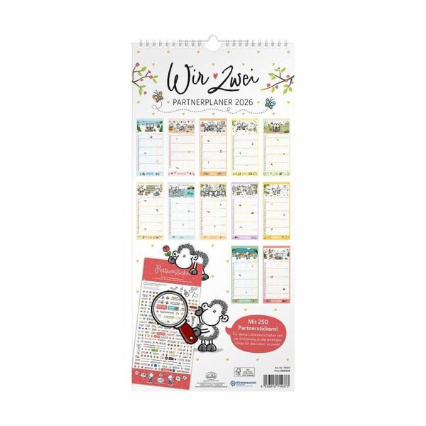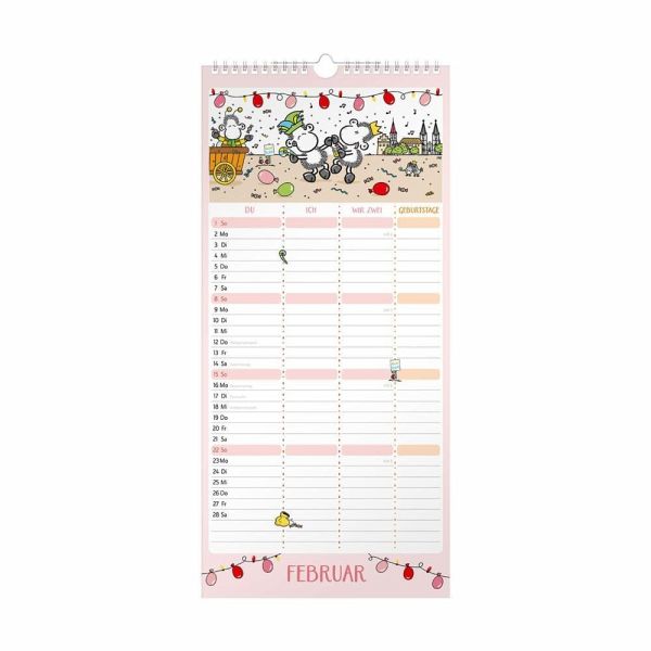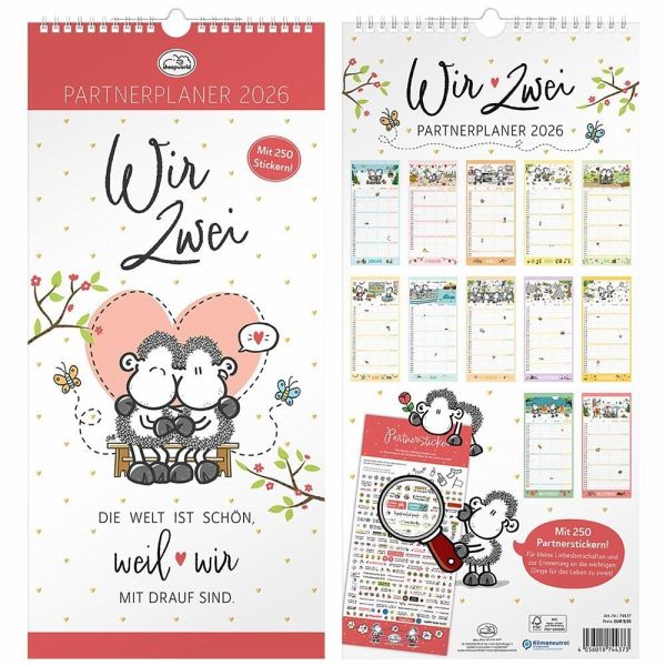 So macht das Planen Spaß. Der Partner-Kalender für das Jahr 2026 von Sheepworld ist Kult und ein echtes Muss für alle Pärchen. Die liebevollen Illustrationen und die witzigen Aufkleber sorgen für viel gute Laune beim gemeinsamen Pläneschmieden.