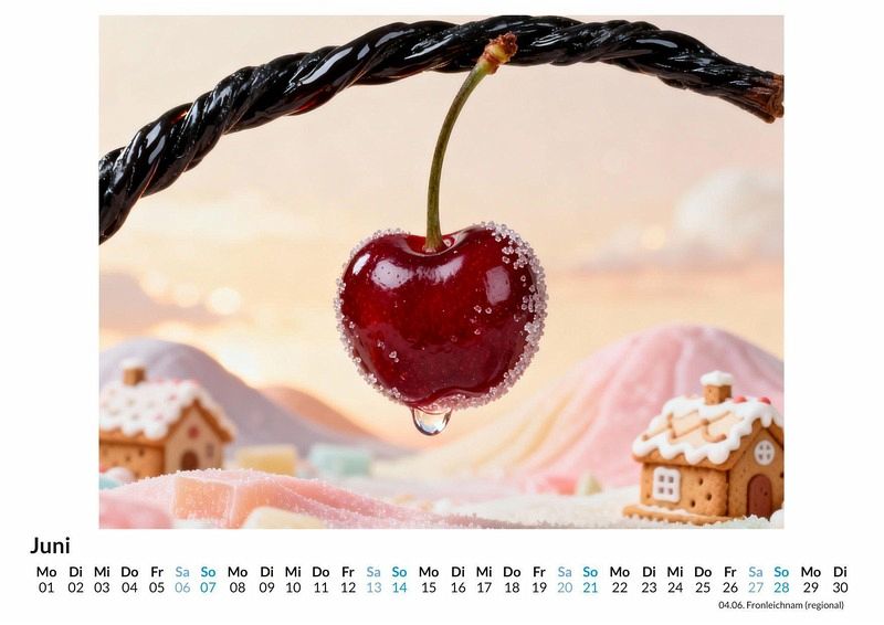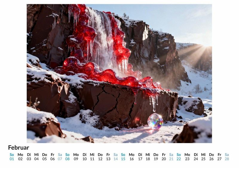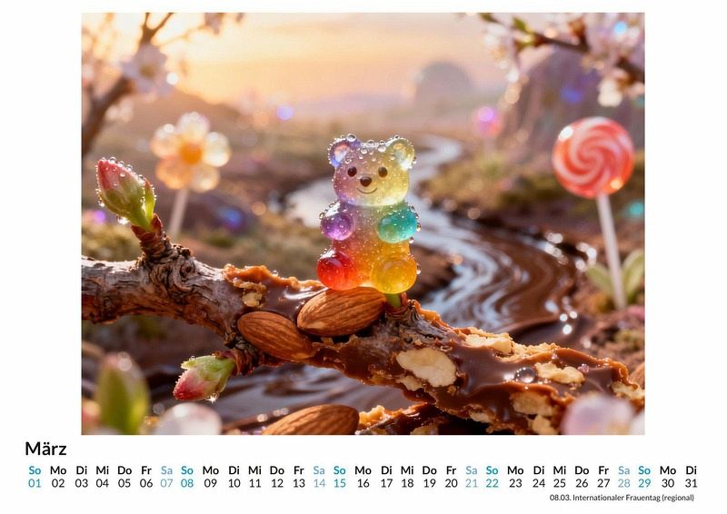Es existiert eine Welt, in der Flüsse aus Schokolade fließen und der Boden aus Keksen besteht. Der Kalender "Planet der Süßigkeiten" öffnet jeden Monat das Tor zu einer solchen Fantasiewelt, in der die kühnsten Träume aller Naschkatzen Wirklichkeit werden. Dieser Kalender ist eine gute Wahl: Für Liebhaber von fantasievollen Welten und süßen Kreationen. Als originelles Geschenk für Freunde und Familie. Für alle, die ihren Alltag mit einem Hauch von Magie und Farbe bereichern möchten. Jedes Kalenderblatt präsentiert eine neue, detailreiche Szenerie. Man entdeckt Landschaften, in denen Lutscher wie Bäume in den Himmel ragen und Lebkuchenhäuser gemütliche Dörfer bilden. Bäche aus Karamell schlängeln sich durch Täler aus Zuckerguss. Diese Visionen wurden nicht von menschlicher Hand gemalt, sondern durch die Kraft digitaler Algorithmen und kreativer Befehle zum Leben erweckt. Jeder Monat enthüllt ein neues, zuckersüßes Panorama, das zum Träumen einlädt. Was der Kalender bietet: Zwölf einzigartige Monatsmotive aus der Welt der Süßigkeiten. Ein praktischer Wandkalender mit übersichtlichem Kalendarium. Eine monatliche Dosis Fantasie und Inspiration für das ganze Jahr. Der Kalender "Planet der Süßigkeiten" ist mehr als nur ein Zeitplaner; er ist ein Fenster in eine Welt, die die Grenzen der Vorstellungskraft sprengt. Eine Entdeckungsreise durch die zwölf süßen Monate erwartet den Betrachter.