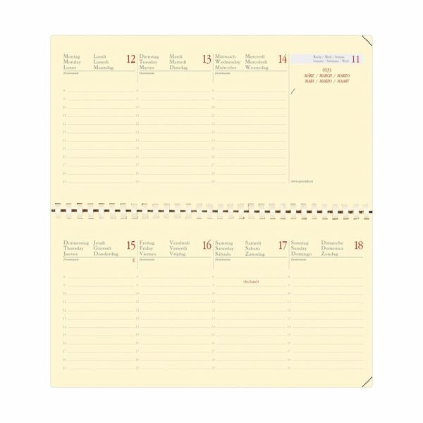 Quo Vadis - Terminkalender - Spiralbindung - 2026 - Planital S Prestige - Die Woche Planning - Mehrsprachig - Marlow - Grün - Dez/Dez - 8,8x17 cm Wochenkalender im Querformat mit einer doppelseitigen Wochenübersicht - die ganze Woche auf einen Blick Enthält auf jeder Doppelseite einen freien Bereich zum Notieren wichtiger Informationen (zu kontaktierende Personen, zu erledigende Dinge usw.) Papier Clairefontaine, Elfenbein, für ein glattes und flüssiges Schreibgefühl, perforierte abreißbare Ecken für eine einfache Orient ierung Abnehmbarer Deckel und nachfüllbarer Inhalt für eine lange Verwendung Aufbewahrungstaschen für kleine Dokumente und ein herausnehmbares Verzeichnis für Ihre Kontakte