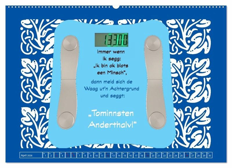 PREMIUM-LINIE - Brillanter Fotokalender mit 12 wunderschönen Motiven, Kunstdruck in Hochglanz in Museumsqualität.QUALITÄT - edle Materialien, stabile Rückwand mit 2 innovativen Einstecktaschen für eine optimale Präsentation an der Wand.NACHHALTIG - deutliche Abfallreduzierung durch bedarfsgerechte Einzelstückfertigung, umweltfreundliches FSC-zertifiziertes Papier, Produktion in Deutschland, klimabewusste Logistik.PERFEKTES GESCHENK - Kalender für Freunde und Familie, für Kinder und Erwachsene, jung und alt, zu Weihnachten, Geburtstag oder zwischendurch.Für Liebhaber der norddeutschen Mundart von Autor(in): Claudia Kleemann