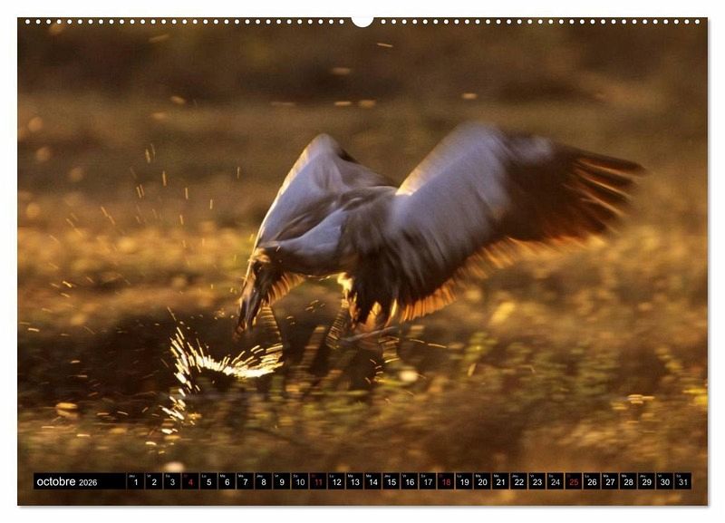 La vraie beauté des oiseaux se révèle lorsqu'ils sont en vol ou quand ils étirent leurs ailes. Dans ce calendrier, je les ai photographiés avec une lumière qui amplifie cette beauté. C'est un calendrier pour ceux qui veulent un peu de légèreté et d'élégance sur leurs murs, à la maison ou au bureau.