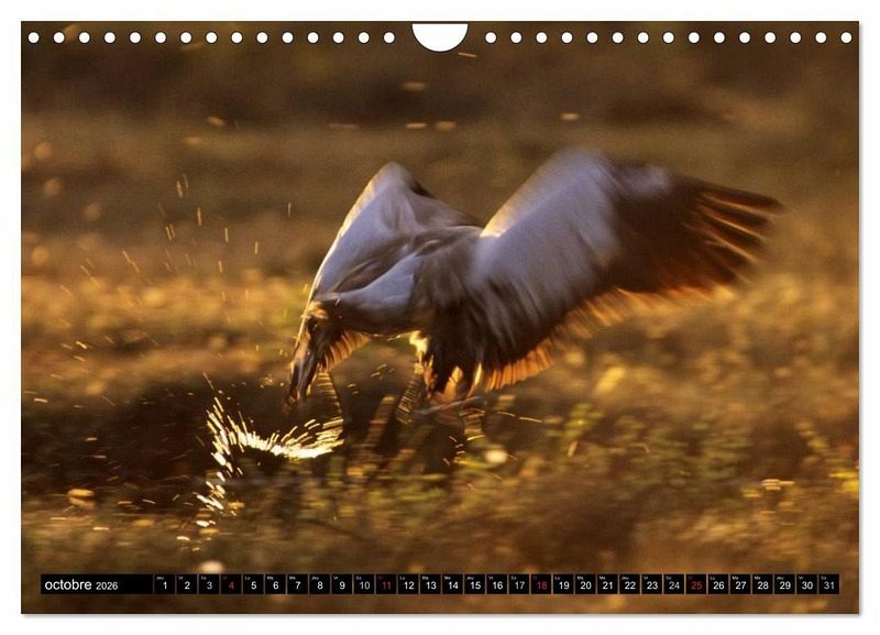 La vraie beauté des oiseaux se révèle lorsqu'ils sont en vol ou quand ils étirent leurs ailes. Dans ce calendrier, je les ai photographiés avec une lumière qui amplifie cette beauté. C'est un calendrier pour ceux qui veulent un peu de légèreté et d'élégance sur leurs murs, à la maison ou au bureau.