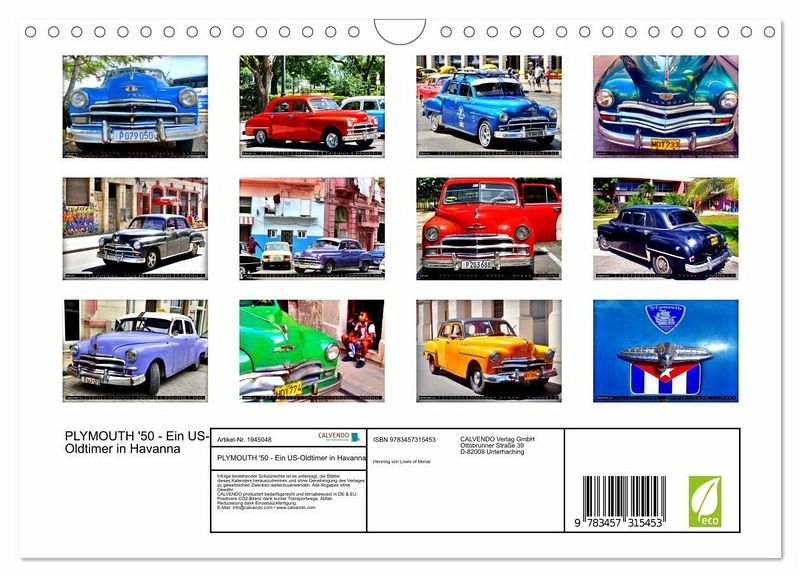 QUALITÄT - Hochwertiger Fotokalender mit12 wunderschönen Motiven auf lichtbeständigem Bilderdruckpapier, robuste Spiralbindung mit Aufhängebügel.NACHHALTIG - deutliche Abfallreduzierung durch bedarfsgerechte Einzelstückfertigung, umweltfreundliches FSC-zertifiziertes Papier, Produktion in Deutschland, klimabewusste Logistik.PERFEKTES GESCHENK - Kalender für Freunde und Familie, für Kinder und Erwachsene, jung und alt, zu Weihnachten, Geburtstag oder zwischendurch.VIELFALT - Bildkalender in verschiedenen Formaten, z.B. DIN A5, DIN A4, DIN A3 sowie DIN A2. Ob Naturmotiv, Gemälde oder Fotos, ideal für ein persönliches Wohlfühlambiente.Limousinen der Marke Plymouth aus dem Jahre 1950 in Kuba von Autor(in): Henning von Loewis of Menar