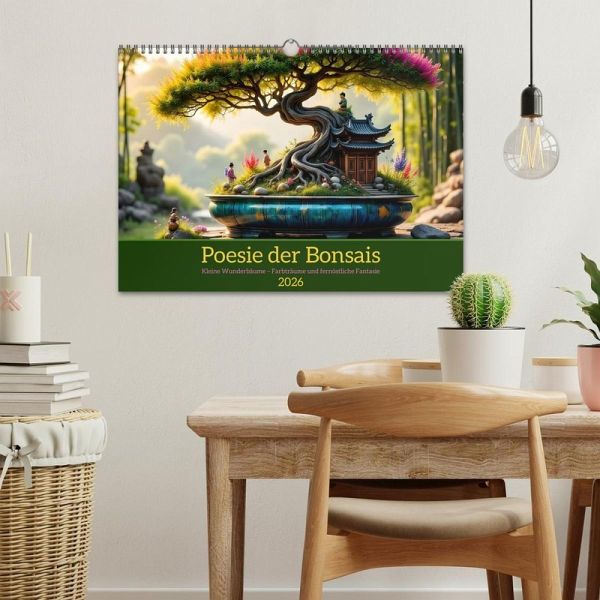 Tauche ein in die magische Welt der Bonsais: "Poesie der Bonsais" präsentiert zwölf einzigartige Motive von kleinen Wunderbäumen, die voller Fantasie und Farbe strahlen. Jeder Monat entführt dich in eine handverlesene Miniaturlandschaft, inspiriert von fernöstlicher Eleganz und kunstvoller Ruhe. Die liebevollen Illustrationen sind KI-generiert und verschmelzen klassische asiatische Ästhetik mit zeitgemäßer Kreativität. Erlebe vielschichtige Details, leuchtende Farben und zauberhafte Kompositionen - perfekt für alle, die Schönheit und Stille suchen und sich täglich von fernöstlicher Poesie inspirieren lassen möchten.