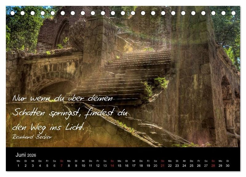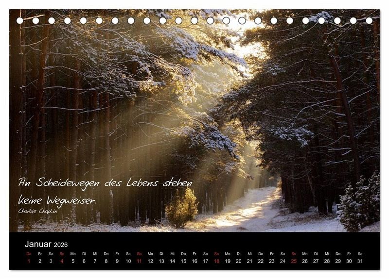 Zauberhafte Wege und Weisheiten aus aller Welt begleiten uns durch das Jahr. Der Kalender "Poetische Wege" führt uns durch besondere Momente, emotionale Bilder und eindrucksvolle Zitate. In den Bildern ist die schlichte, spirituelle Schönheit des Nordosten Deutschlands verknüpft mit Sehnsüchten, Träumen und Gedanken prägender Persönlichkeiten dieser Welt.