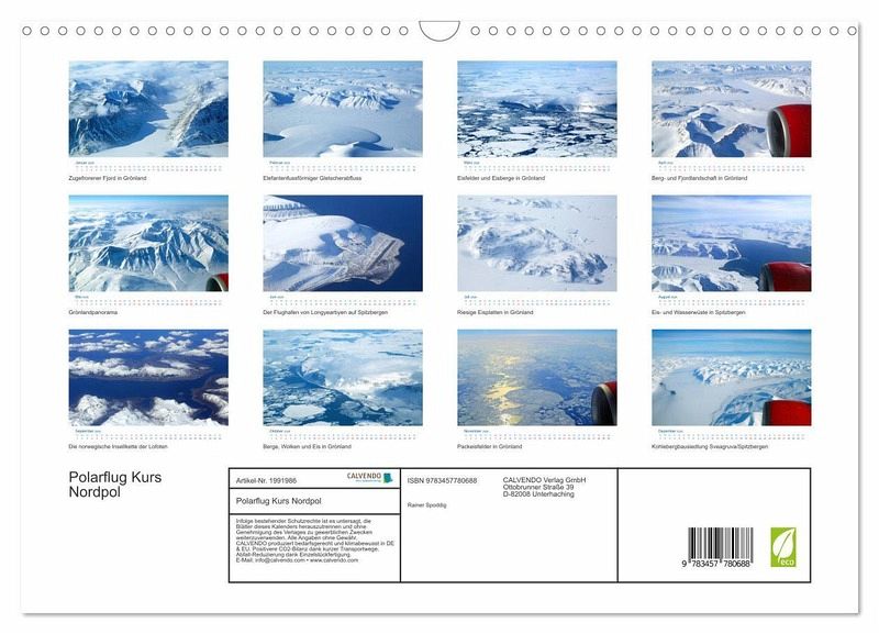 QUALITÄT - Hochwertiger Fotokalender mit 12 wunderschönen Motiven auf lichtbeständigem Bilderdruckpapier, robuste Spiralbindung mit Aufhängebügel.NACHHALTIG - deutliche Abfallreduzierung durch bedarfsgerechte Einzelstückfertigung, umweltfreundliches FSC-zertifiziertes Papier, Produktion in Deutschland, klimabewusste Logistik.PERFEKTES GESCHENK - Kalender für Freunde und Familie, für Kinder und Erwachsene, jung und alt, zu Weihnachten, Geburtstag oder zwischendurch.VIELFALT - Bildkalender in verschiedenen Formaten, z.B. DIN A5, DIN A4, DIN A3 sowie DIN A2. Ob Naturmotiv, Gemälde oder Fotos, ideal für ein persönliches Wohlfühlambiente.Flug Richtung Nordpol über ewiges Eis von Autor(in): Rainer Spoddig