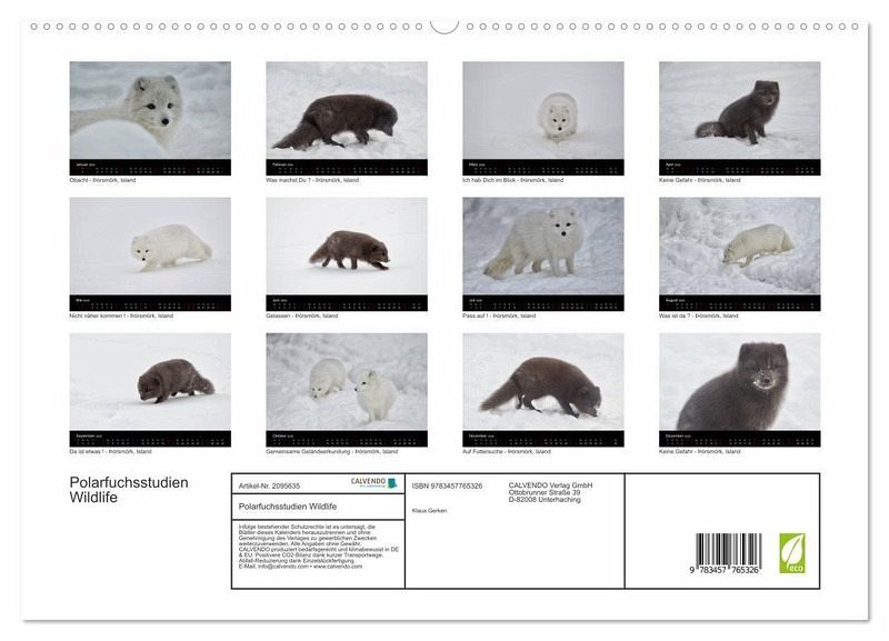 Der mehrfach ausgezeichnete Naturfotograf Klaus Gerken zeigt in diesem Kalender atemberaubende Aufnahmen des Polarfuchses sowohl im weißen wie auch im braunen Winterfell. In der Mimik zeigt der Fuchs im Kontakt mit dem Fotografen sein natürliches Verhaltensmuster.