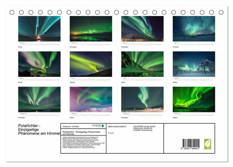 QUALITÄT - Hochwertiger Fotokalender mit 12 wunderschönen Motiven auf lichtbeständigem Bilderdruckpapier, robuste Spiralbindung.NACHHALTIG - deutliche Abfallreduzierung durch bedarfsgerechte Einzelstückfertigung, umweltfreundliches FSC-zertifiziertes Papier, Produktion in Deutschland, klimabewusste Logistik.PERFEKTES GESCHENK - Kalender für Freunde und Familie, für Kinder und Erwachsene, jung und alt, zu Weihnachten, Geburtstag oder zwischendurch.VIELFALT - Bildkalender in verschiedenen Formaten, z.B. DIN A5, DIN A4, DIN A3 sowie DIN A2. Ob Naturmotiv, Gemälde oder Fotos, ideal für ein persönliches Wohlfühlambiente.Lassen Sie sich von den beeindruckenden Nordlichter begeistern. von Autor(in): Benjamin Lederer