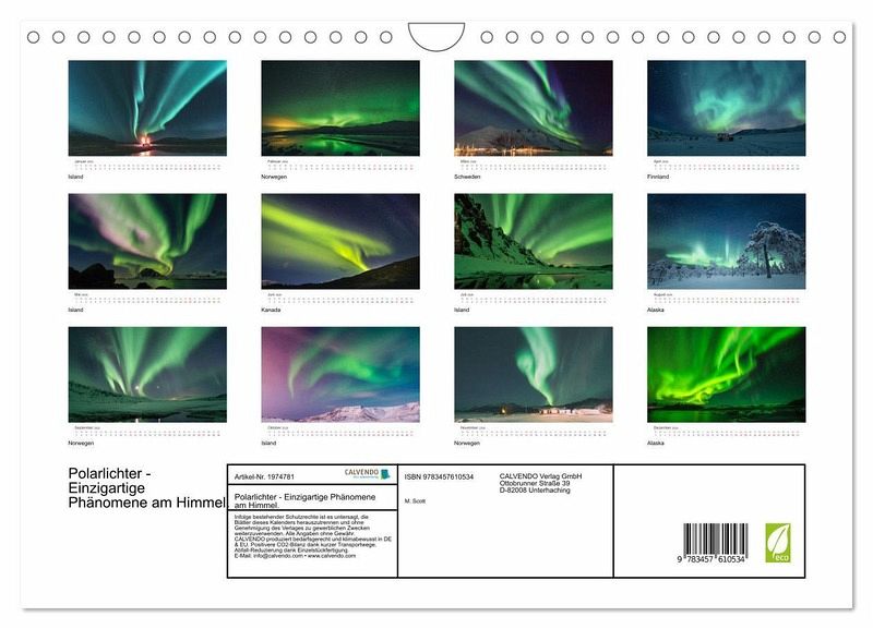 QUALITÄT - Hochwertiger Fotokalender mit 12 wunderschönen Motiven auf lichtbeständigem Bilderdruckpapier, robuste Spiralbindung mit Aufhängebügel.NACHHALTIG - deutliche Abfallreduzierung durch bedarfsgerechte Einzelstückfertigung, umweltfreundliches FSC-zertifiziertes Papier, Produktion in Deutschland, klimabewusste Logistik.PERFEKTES GESCHENK - Kalender für Freunde und Familie, für Kinder und Erwachsene, jung und alt, zu Weihnachten, Geburtstag oder zwischendurch.VIELFALT - Bildkalender in verschiedenen Formaten, z.B. DIN A5, DIN A4, DIN A3 sowie DIN A2. Ob Naturmotiv, Gemälde oder Fotos, ideal für ein persönliches Wohlfühlambiente.Lassen Sie sich von den beeindruckenden Nordlichter begeistern. von Autor(in): Benjamin Lederer