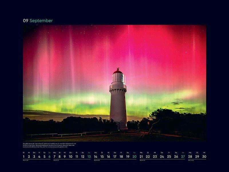 Monat für Monat wartet ein bildstarkes Highlight auf Entdeckung, und ein ansprechendes Kalendarium sorgt für optimalen Nutzen. Die mattschwarzen Rahmen bilden einen starken Kontrast zu den brillanten Fotografien.