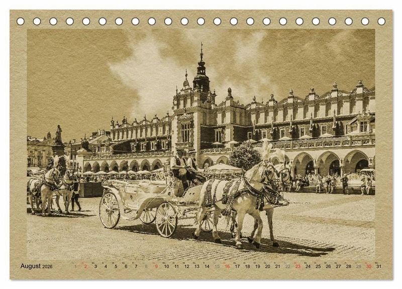 Auf einer Reise durch unser Nachbarland Polen können Sie traumhafte Altstädte besichtigen, von denen einige zum UNESCO-Weltkulturerbe zählen. Herrliche Architektur lädt zum Verweilen ein, und macht Lust noch mehr von diesen schönen Land zu entdecken. Der Fotograf Gunter Kirsch hat für diesen Kalender digitale Fotos so bearbeitet, dass sie den Eindruck vermitteln, aus einer längst vergangenen Epoche zu sein.