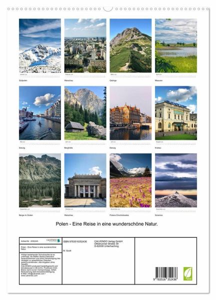 QUALITÄT - Hochwertiger Fotokalender mit 12 wunderschönen Motiven auf lichtbeständigem Bilderdruckpapier, robuste Spiralbindung mit Aufhängebügel.NACHHALTIG - deutliche Abfallreduzierung durch bedarfsgerechte Einzelstückfertigung, umweltfreundliches FSC-zertifiziertes Papier, Produktion in Deutschland, klimabewusste Logistik.PERFEKTES GESCHENK - Kalender für Freunde und Familie, für Kinder und Erwachsene, jung und alt, zu Weihnachten, Geburtstag oder zwischendurch.VIELFALT - Bildkalender in verschiedenen Formaten, z.B. DIN A5, DIN A4, DIN A3 sowie DIN A2. Ob Naturmotiv, Gemälde oder Fotos, ideal für ein persönliches Wohlfühlambiente.Eine fantastische Reise nach Polen. von Autor(in): Benjamin Lederer