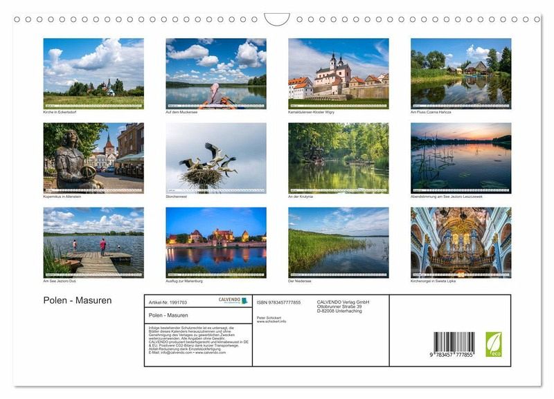 QUALITÄT - Hochwertiger Fotokalender mit 12 wunderschönen Motiven auf lichtbeständigem Bilderdruckpapier, robuste Spiralbindung mit Aufhängebügel.NACHHALTIG - deutliche Abfallreduzierung durch bedarfsgerechte Einzelstückfertigung, umweltfreundliches FSC-zertifiziertes Papier, Produktion in Deutschland, klimabewusste Logistik.PERFEKTES GESCHENK - Kalender für Freunde und Familie, für Kinder und Erwachsene, jung und alt, zu Weihnachten, Geburtstag oder zwischendurch.VIELFALT - Bildkalender in verschiedenen Formaten, z.B. DIN A5, DIN A4, DIN A3 sowie DIN A2. Ob Naturmotiv, Gemälde oder Fotos, ideal für ein persönliches Wohlfühlambiente.Die wunderbare Landschaft im Nordosten Polens in einem Kalender vom Reisefotografen Peter Schickert von Autor(in): Peter Schickert