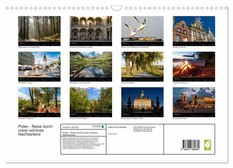 QUALITÄT - Hochwertiger Fotokalender mit 12 wunderschönen Motiven auf lichtbeständigem Bilderdruckpapier, robuste Spiralbindung mit Aufhängebügel.NACHHALTIG - deutliche Abfallreduzierung durch bedarfsgerechte Einzelstückfertigung, umweltfreundliches FSC-zertifiziertes Papier, Produktion in Deutschland, klimabewusste Logistik.PERFEKTES GESCHENK - Kalender für Freunde und Familie, für Kinder und Erwachsene, jung und alt, zu Weihnachten, Geburtstag oder zwischendurch.VIELFALT - Bildkalender in verschiedenen Formaten, z.B. DIN A5, DIN A4, DIN A3 sowie DIN A2. Ob Naturmotiv, Gemälde oder Fotos, ideal für ein persönliches Wohlfühlambiente.Fotografien von den schönsten Landschaften und Orten Polens von Autor(in): Oliver Nowak