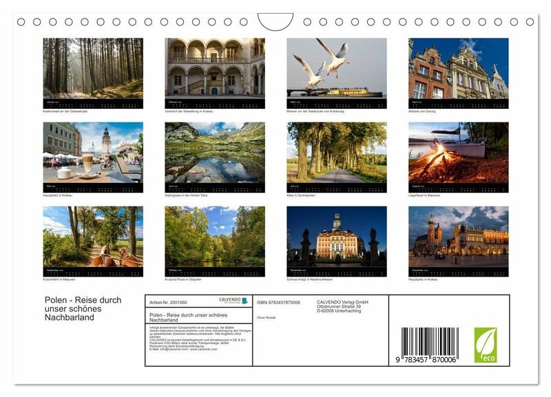 QUALITÄT - Hochwertiger Fotokalender mit 12 wunderschönen Motiven auf lichtbeständigem Bilderdruckpapier, robuste Spiralbindung mit Aufhängebügel.NACHHALTIG - deutliche Abfallreduzierung durch bedarfsgerechte Einzelstückfertigung, umweltfreundliches FSC-zertifiziertes Papier, Produktion in Deutschland, klimabewusste Logistik.PERFEKTES GESCHENK - Kalender für Freunde und Familie, für Kinder und Erwachsene, jung und alt, zu Weihnachten, Geburtstag oder zwischendurch.VIELFALT - Bildkalender in verschiedenen Formaten, z.B. DIN A5, DIN A4, DIN A3 sowie DIN A2. Ob Naturmotiv, Gemälde oder Fotos, ideal für ein persönliches Wohlfühlambiente.Fotografien von den schönsten Landschaften und Orten Polens von Autor(in): Oliver Nowak