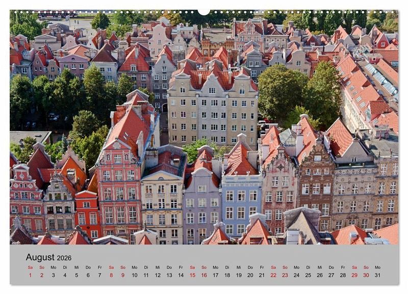 Der Kalender zeigt Städte, Kirchen und Schlösser in Polen - von Danzig (Gdansk) und der Masurischen Seenplatte im Norden, Bromberg und Kulm im Westen bis Krakau (Krakow), Breslau (Wroclaw) und den Schlössern in Niederschlesien im Süden.