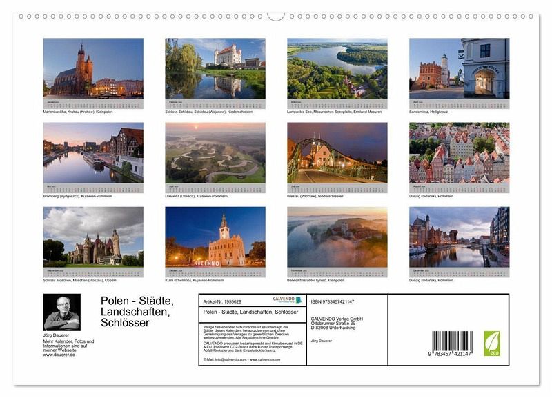PREMIUM-LINIE - Brillanter Fotokalender mit 12 wunderschönen Motiven, Kunstdruck in Hochglanz in Museumsqualität.QUALITÄT - edle Materialien, stabile Rückwand mit 2 innovativen Einstecktaschen für eine optimale Präsentation an der Wand.NACHHALTIG - deutliche Abfallreduzierung durch bedarfsgerechte Einzelstückfertigung, umweltfreundliches FSC-zertifiziertes Papier, Produktion inDeutschland, klimabewusste Logistik.PERFEKTES GESCHENK - Kalender für Freunde und Familie, für Kinder und Erwachsene, jung und alt, zu Weihnachten, Geburtstag oder zwischendurch.Städte, Dörfer, Kirchen, Schlösser, Landschaften, Flüsse und Seen in Polen von Autor(in): Jörg Dauerer