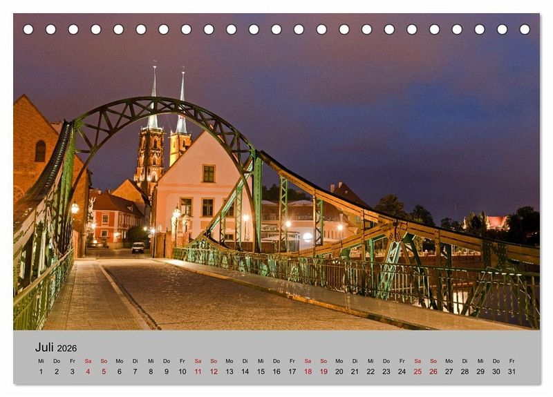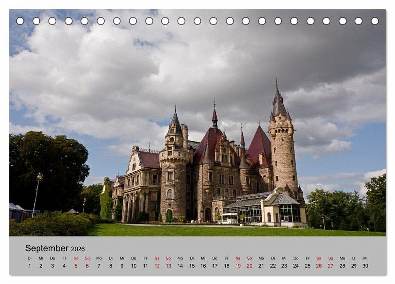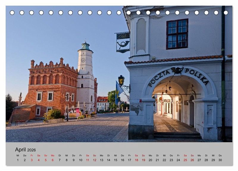 Der Kalender zeigt Städte, Kirchen und Schlösser in Polen - von Danzig (Gdansk) und der Masurischen Seenplatte im Norden, Bromberg und Kulm im Westen bis Krakau (Krakow), Breslau (Wroclaw) und den Schlössern in Niederschlesien im Süden.