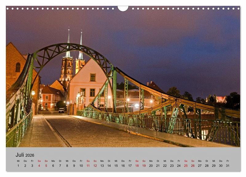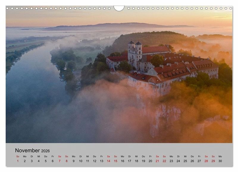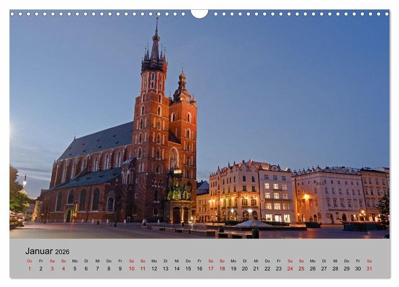 Der Kalender zeigt Städte, Kirchen und Schlösser in Polen - von Danzig (Gdansk) und der Masurischen Seenplatte im Norden, Bromberg und Kulm im Westen bis Krakau (Krakow), Breslau (Wroclaw) und den Schlössern in Niederschlesien im Süden.