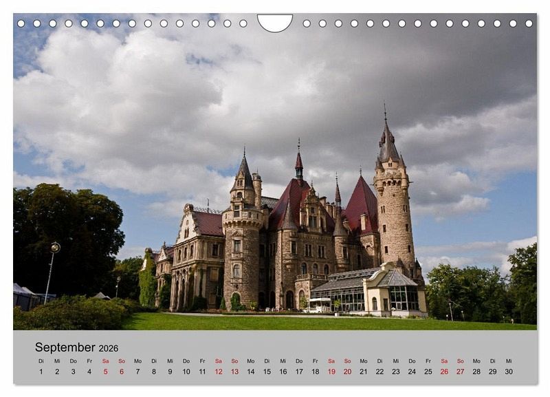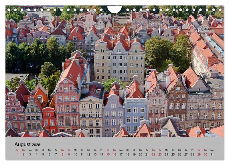 Der Kalender zeigt Städte, Kirchen und Schlösser in Polen - von Danzig (Gdansk) und der Masurischen Seenplatte im Norden, Bromberg und Kulm im Westen bis Krakau (Krakow), Breslau (Wroclaw) und den Schlössern in Niederschlesien im Süden.