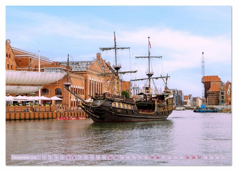 Dezember: Danzig: Insel Bleihof, Polnische Baltische Philharmonie, historisches Ausflugsschiff und Blick auf das Krantor