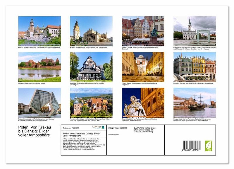 QUALITÄT - Hochwertiger Fotokalender mit 12 wunderschönen Motiven auf lichtbeständigem Bilderdruckpapier, robuste Spiralbindung mit Aufhängebügel.NACHHALTIG - deutliche Abfallreduzierung durch bedarfsgerechte Einzelstückfertigung, umweltfreundliches FSC-zertifiziertes Papier, Produktion in Deutschland, klimabewusste Logistik.PERFEKTES GESCHENK - Kalender für Freunde und Familie, für Kinder und Erwachsene, jung und alt, zu Weihnachten, Geburtstag oder zwischendurch.VIELFALT - Bildkalender in verschiedenen Formaten, z.B. DIN A5, DIN A4, DIN A3 sowie DIN A2. Ob Naturmotiv, Gemälde oder Fotos, ideal für ein persönliches Wohlfühlambiente.Zwölf ausgewählte Stadtansichten zeigen Polen von seiner eindrucksvollsten Seite - atmosphärisch, historisch und voller architektonischer Vielfalt. von Autor(in): Hanna Wagner