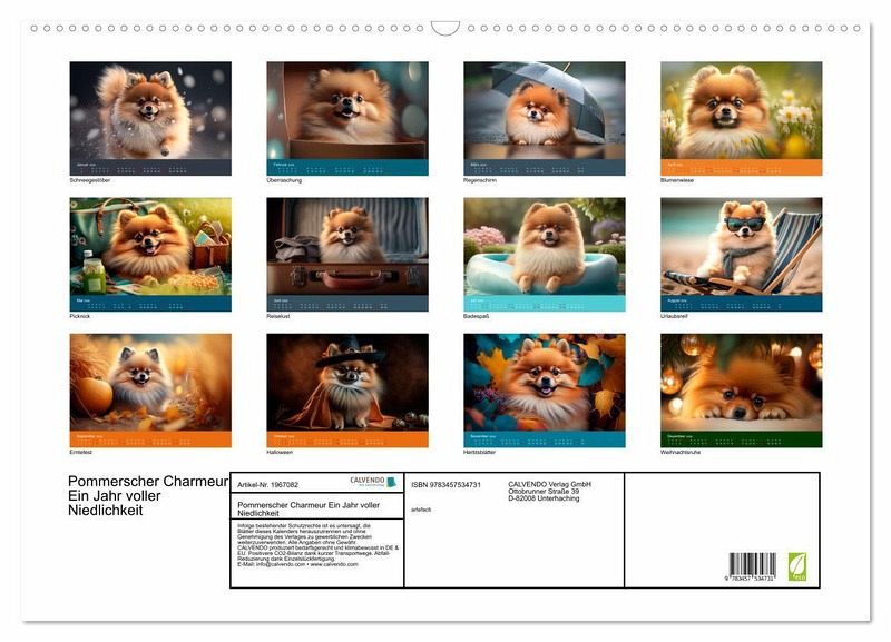 Entdecke die unbeschwerte Welt des Pommerschen Hündchens mit diesem lustigen Kalender! Mit einem Jahr voller entzückender und witziger Bilder, begleitet der Kalender durch alle Jahreszeiten und bringt jeden Monat zum Lachen. Jedes Motiv ist so niedlich und charmant, dass man einfach nicht anders kann, als sich von der guten Laune anstecken zu lassen. Der perfekte Begleiter für zu Hause, im Büro oder in der Küche, dieser Kalender wird die Stimmung heben und einen breiten Lächeln auf Ihr Gesicht zaubern. Überrasche einen Freund, ein Familienmitglied oder dich selbst mit diesem süßen und humorvollen Kalender, der das ganze Jahr über für Freude sorgt. Hol dir jetzt deinen Pommerschen Hund Kalender und erlebe jeden Monat einen Grund zum Lachen!