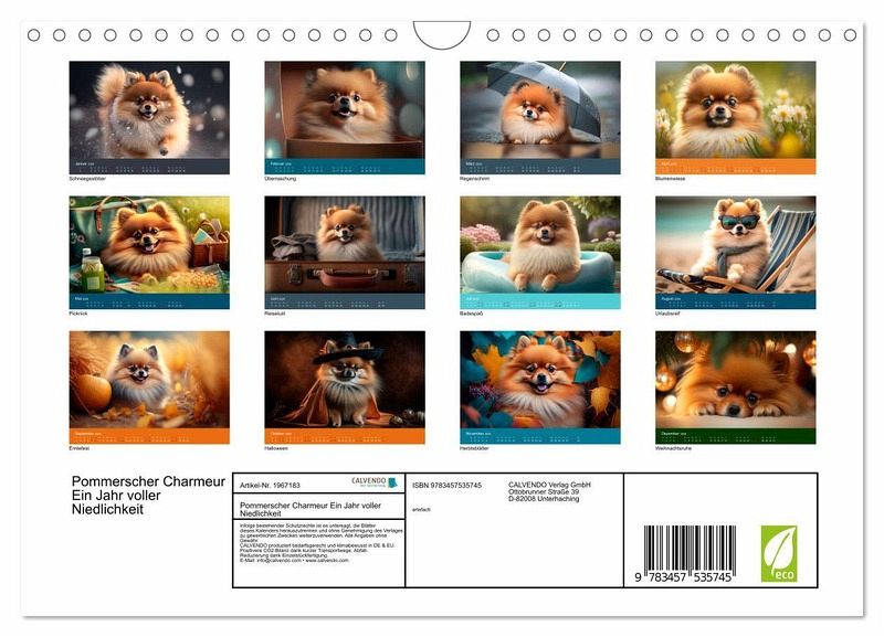 Entdecke die unbeschwerte Welt des Pommerschen Hündchens mit diesem lustigen Kalender! Mit einem Jahr voller entzückender und witziger Bilder, begleitet der Kalender durch alle Jahreszeiten und bringt jeden Monat zum Lachen. Jedes Motiv ist so niedlich und charmant, dass man einfach nicht anders kann, als sich von der guten Laune anstecken zu lassen. Der perfekte Begleiter für zu Hause, im Büro oder in der Küche, dieser Kalender wird die Stimmung heben und einen breiten Lächeln auf Ihr Gesicht zaubern. Überrasche einen Freund, ein Familienmitglied oder dich selbst mit diesem süßen und…mehr