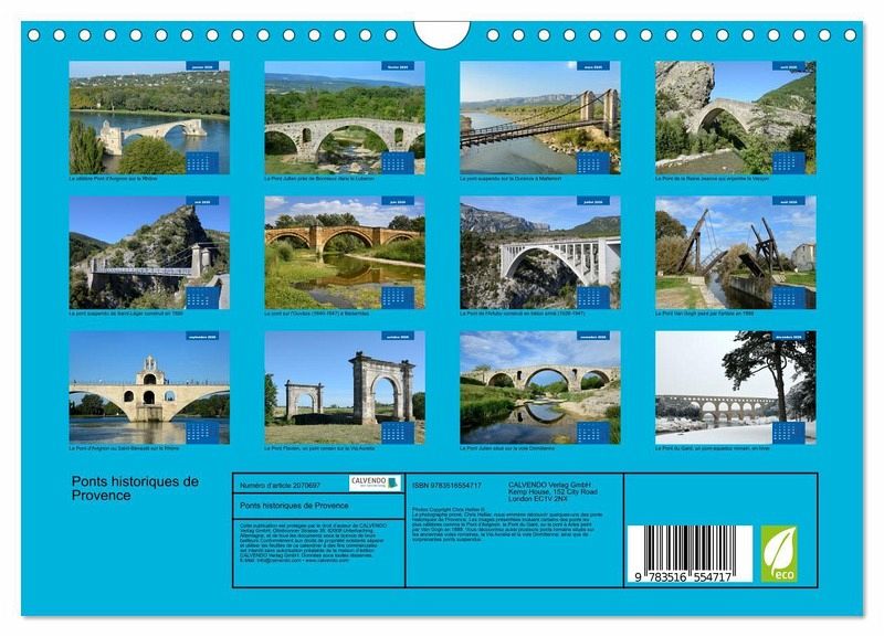 Le photographe primé, Chris Hellier, nous emmène découvrir quelques uns des ponts historiques de Provence. Les images présentées incluent certains des ponts les plus célèbre comme le Pont d'Avignon, le Pont du Gard, ou le pont à Arles peint par Van Gogh en 1888. Vous découvrirez aussi plusieurs ponts romains situés sur les anciennes voies romaines, la Via Aurelia et la voie Domitienne; ainsi que de surprenantes ponts suspendus.
