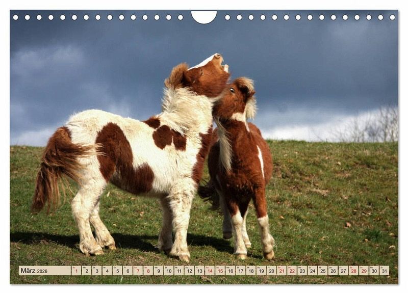 Im Kalender zeige ich verschiedene Shettys und Shettymixe in ihrer vollen Schönheit bei verschiedenen Aktionen. So gibt es Kalenderblätter wo sie schwimmen, steigen, winken etc.